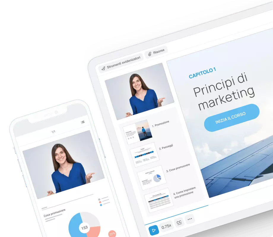 - Vuoi che un’ampia gamma di servizi di supporto per video come le Smart TV, i tablet e gli smartphone mostrino le tue diapositive con voce e audio alla perfezione.