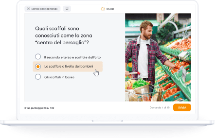 Inizia subito a creare test a risposta multipla online per aiutare dipendenti e studenti a raggiungere risultati migliori. Prova iSpring QuizMaker con una versione gratuita di 14 giorni e inizia subito a creare quiz a risposta multipla!