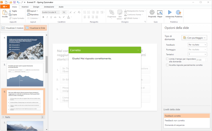 Abbiamo deciso di valorizzare il nostro Quiz sul monte Everest con iSpring Suite, un semplice strumento di authoring, e questo è ciò che abbiamo ottenuto: